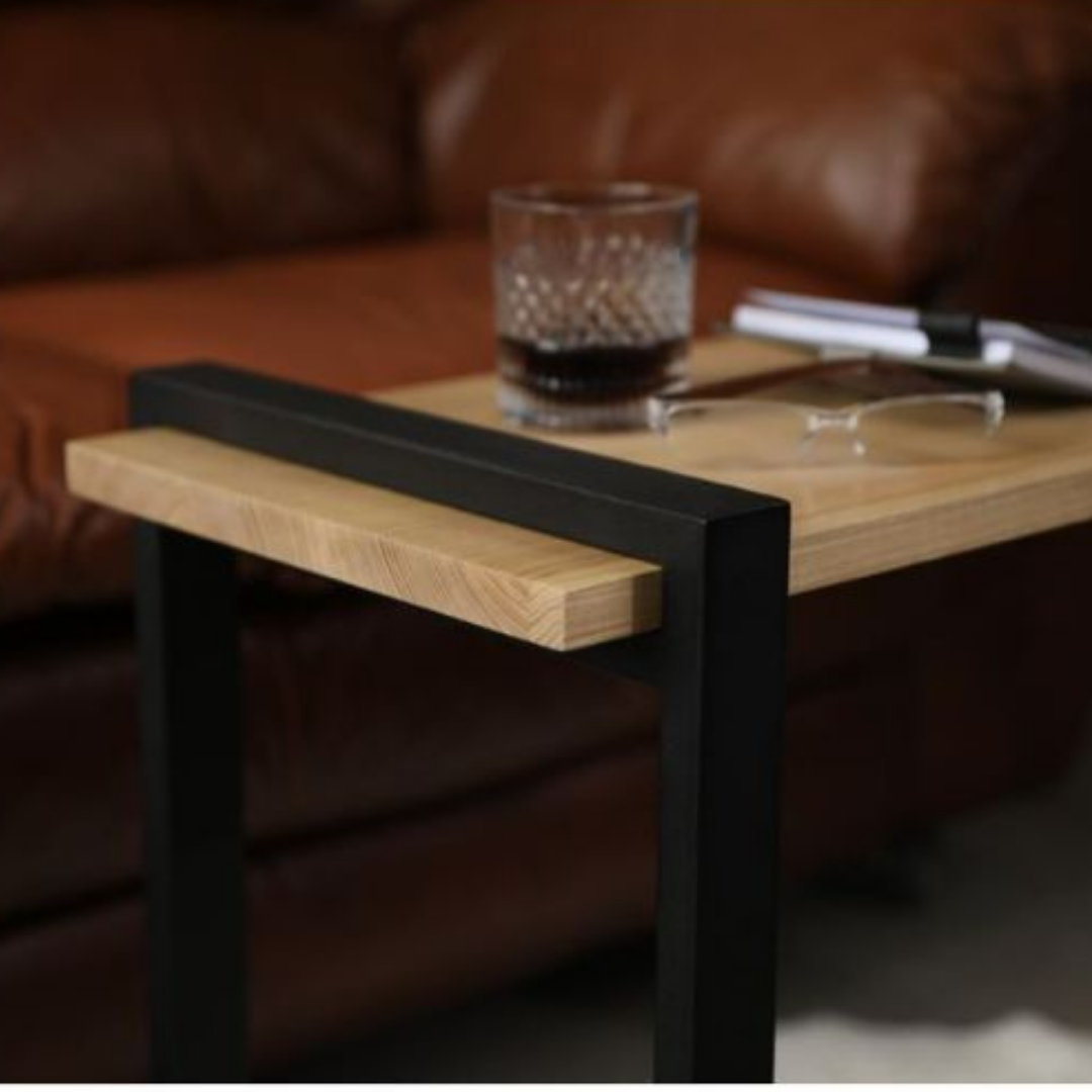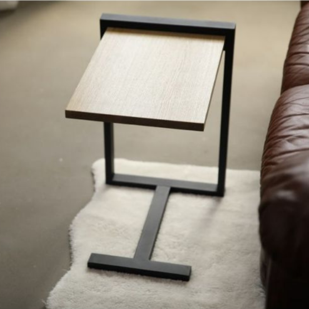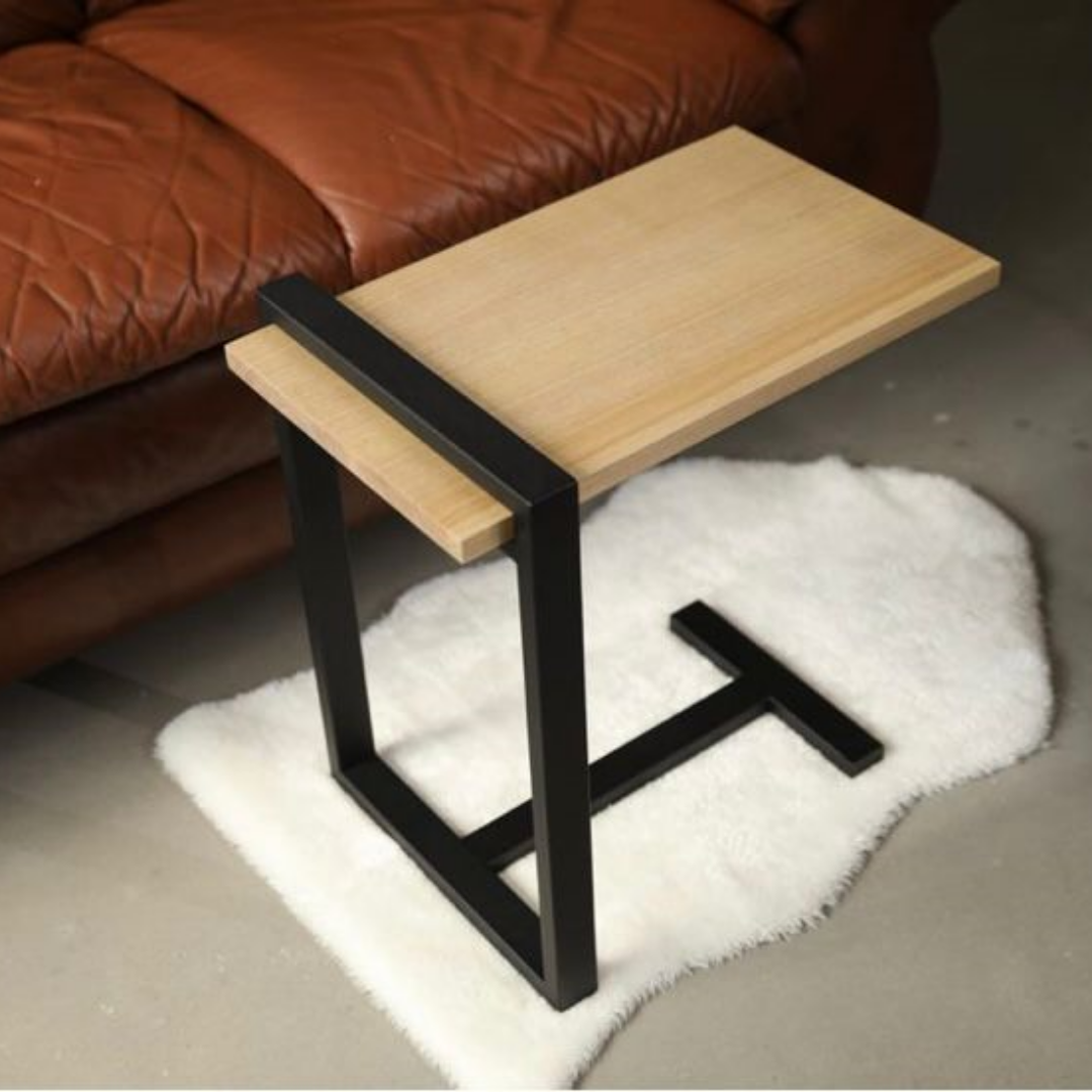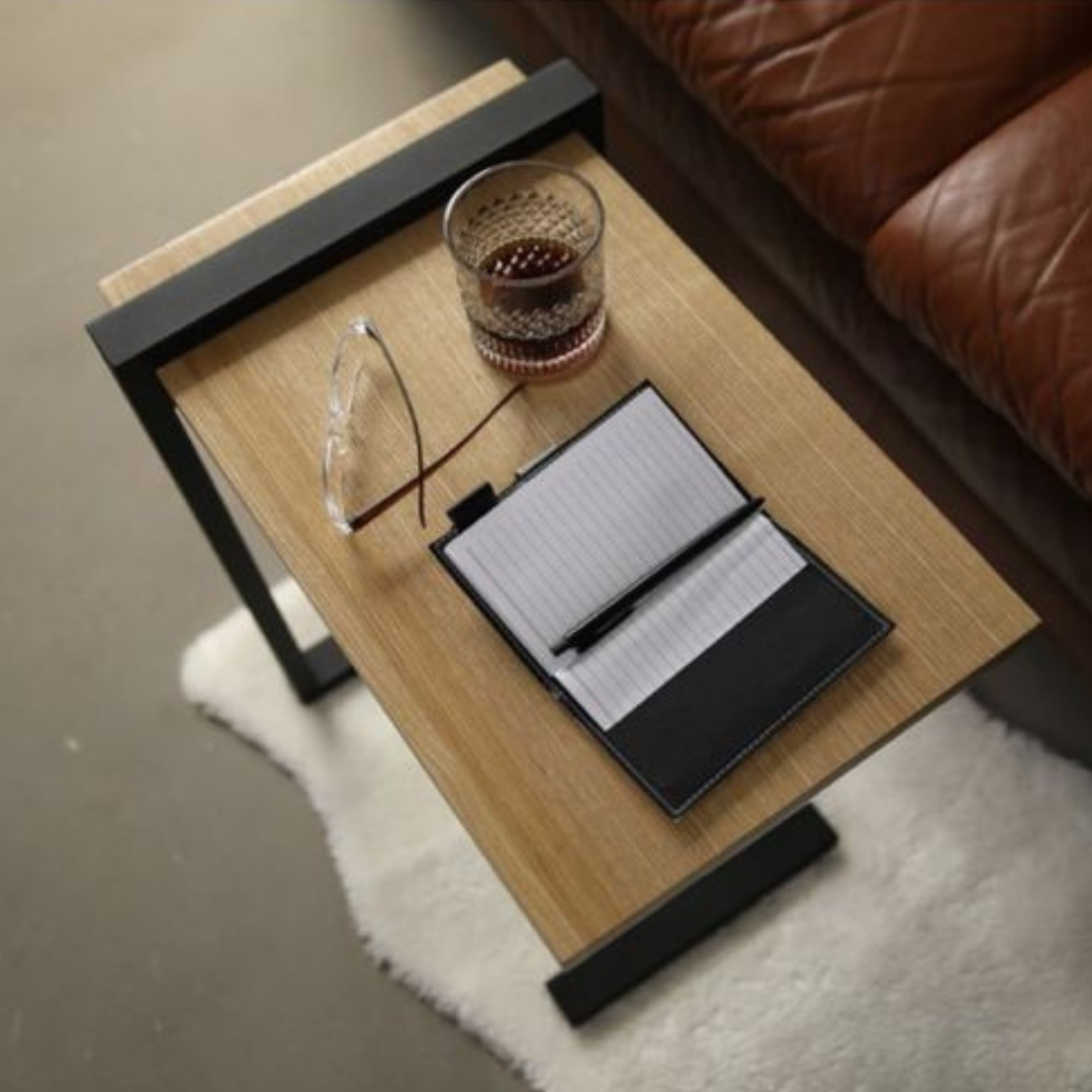Diseño en forma de “C”: se desliza fácilmente debajo del sillón, cama o butaca, permitiéndote usarla como superficie de trabajo o apoyo sin ocupar espacio adicional.